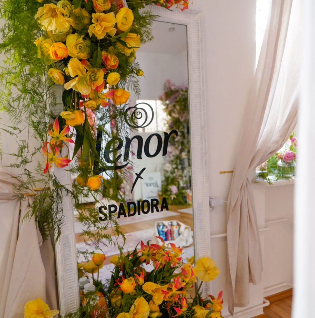 Zostaliśmy zaangażowani przez klienta do stworzenia wyjątkowej dekoracji na press day marki Lenor x Spadiora, który odbywał się w studiu, gdzie na co dzień organizowane są zajęcia aerial yogi. Naszym zadaniem było przekształcenie tej przestrzeni w magiczne miejsce, które podkreśliłoby nowości produktowe Lenor, jednocześnie nie zaburzając funkcjonalności studia. Głównym wyzwaniem było stworzenie spektakularnej dekoracji, która musiała zmieścić się w ograniczonej przestrzeni i nie mogła przeszkadzać w codziennym użytkowaniu studia po zakończeniu wydarzenia. Musieliśmy zadbać o to, aby aranżacja była efektowna, ale jednocześnie praktyczna i bezpieczna. Stworzyliśmy trzy stacje tematyczne, które nawiązywały do kolorów i stylów trzech różnych butelek Lenor, nadając każdej z nich unikalny charakter. W centralnym punkcie umieściliśmy imponującą bramę kwiatową wokół lustra, idealną do zdjęć, oraz stworzyliśmy na oknach i suficie subtelne, ale wyraziste dekoracje kwiatowe. Dodatkowo, zaprojektowaliśmy spektakularną butelkę z kwiatów, z której kwiaty "wylewały się" na stelaż, tworząc niezapomniany efekt wizualny. Kolejnym wyzwaniem było zapewnienie trwałości dekoracji przez cztery tygodnie, przy użyciu głównie naturalnych kwiatów. Dzięki starannej selekcji roślin i przemyślanej kompozycji, udało nam się osiągnąć efekt, który zachwycał świeżością przez cały okres ekspozycji. Nasza zdolność do adaptacji i kreatywnego myślenia pozwoliła nam na realizację projektu, który nie tylko zachwycił klienta, ale również sprawił, że przestrzeń studia pozostała funkcjonalna i bezpieczna. Klient był niezwykle zadowolony z efektu, co potwierdza, że jesteśmy w stanie sprostać najbardziej wymagającym zadaniom, tworząc dekoracje na najwyższym poziomie, które robią wrażenie, a jednocześnie są praktyczne.